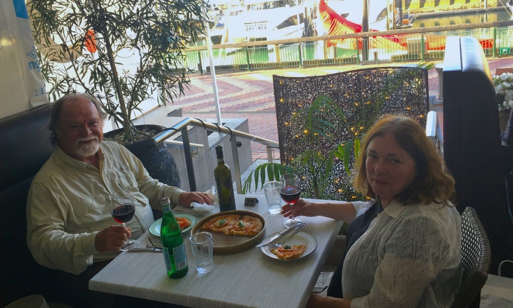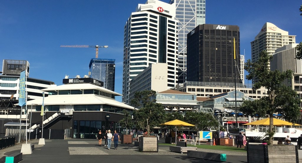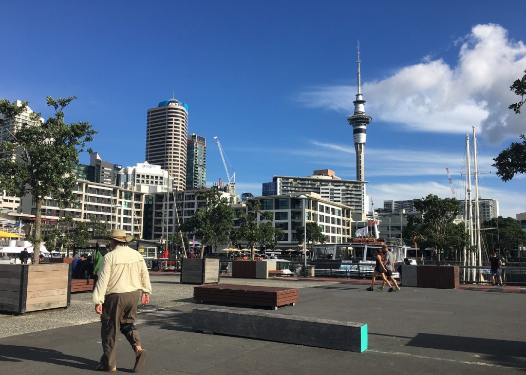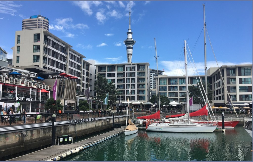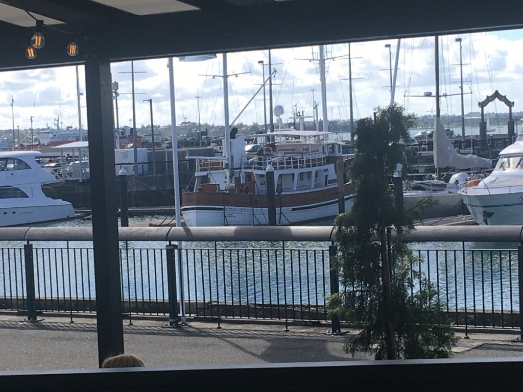 The Viaduct Harbour, identified in the text at the bottom left of this photo, is a marina within the larger harbour surrounded on the inside by two piers with pubs and restaurants and the outside by a scenic seaside pier. It was the perfect setting for our last afternoon in New Zealand’s sunny summer.