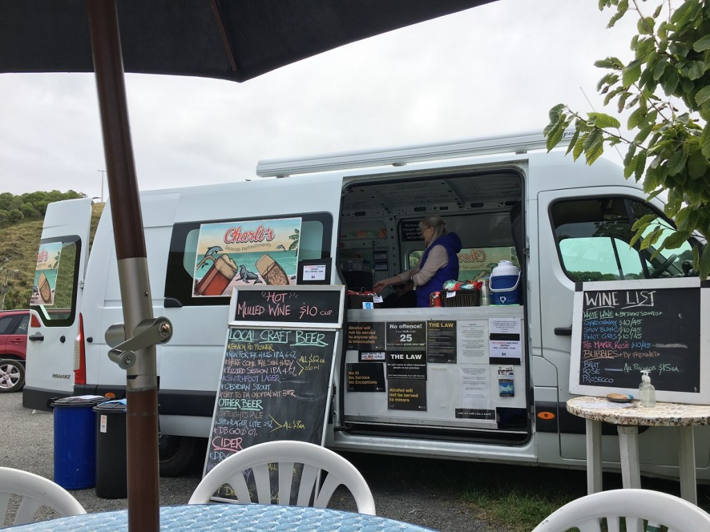 With Charli’s Seaside Refreshments alongside, we were able to have some very fine Marlborough Sauvignon Blanc with our meal, so very civilized!