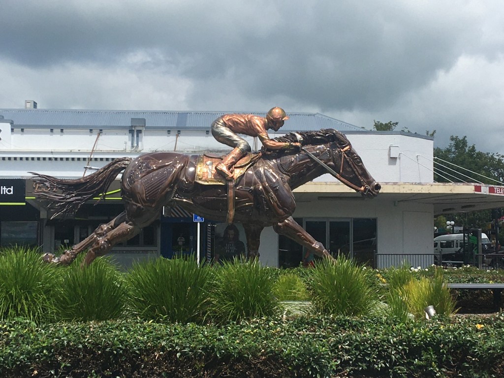 Driving through Matamata to the Shire, we were impressed with this piece of street art. As well as the neighbour to the Hobbiton movie set, Matamata is also a horse racing and training centre.