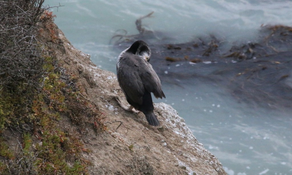 Birds were coming and going in the very windy environment. This group of birds assembled on the beach and then departed individually to their various nesting sites along the cliffs.
