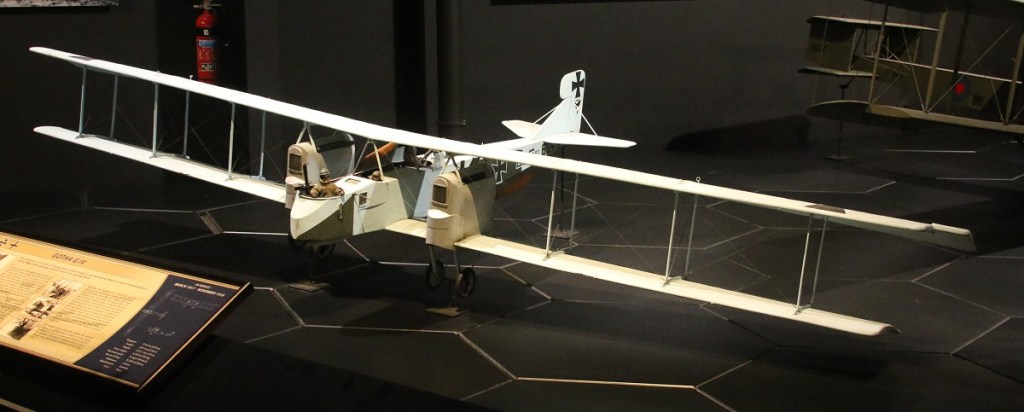 The Gotha G.IV (model shown here) entered service in March 1917 and replaced zeppelins as bombers. This allowed Germany to initiate a bombing offensive against England. The first mass attack was May 25, 1917 on Folkestone, Shorncliffe and Cheriton, killing about 95 people and injuring over 150. On June 13 the first attack on London caused the heaviest air raid casualties of the war, with 162 dead and 432 injured. The British had to upgrade air defense radically.