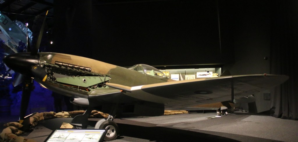 The aviation heritage collection focuses on fighter planes. As tensions mounted during the 1930s, participants in WW I began looking to design new replacement fighters for the biplanes still in use in the early 1930s. The Dangerous Skies display focuses on the most important fighters of WW II, and some interesting stories around WW II aviators.