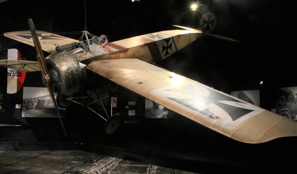Airco De Havilland DH-2 was a pusher plane with the engine and propeller behind the cockpit to avoid conflict between the propeller and the nose-mounted machine gun. It proved quite successful in combat and was in service from June 1915 until July 1917.