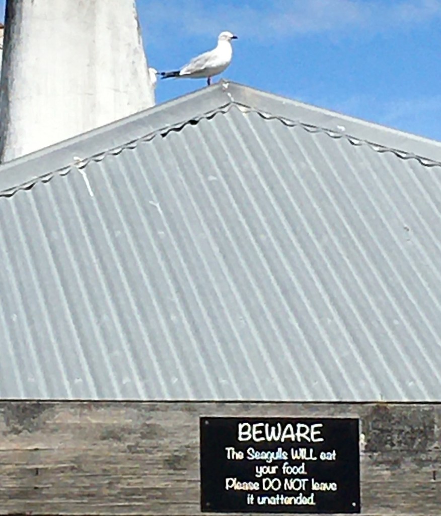 The warning here was on the wall above our table. Many times we’ve seen a diner step away only for moments, to return to a table scavenged free of any remaining food!