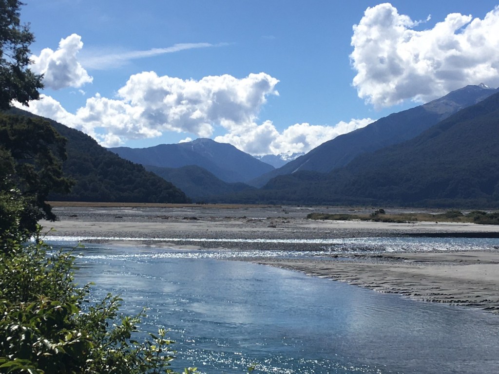 About 30 minutes east of Haast we came across a viewpoint where the Haast River’s major tributary, the Landsborough River joins it. This view is to the northeast where the Landsborough River originates 65 km away at McKerrow Glacier just to the west side Aoraki / Mt Cook National Park.
