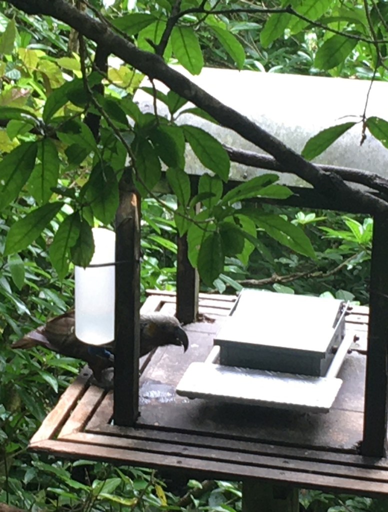 Feeding stations are maintained to increase the likelihood of visitors encountering the kākā.