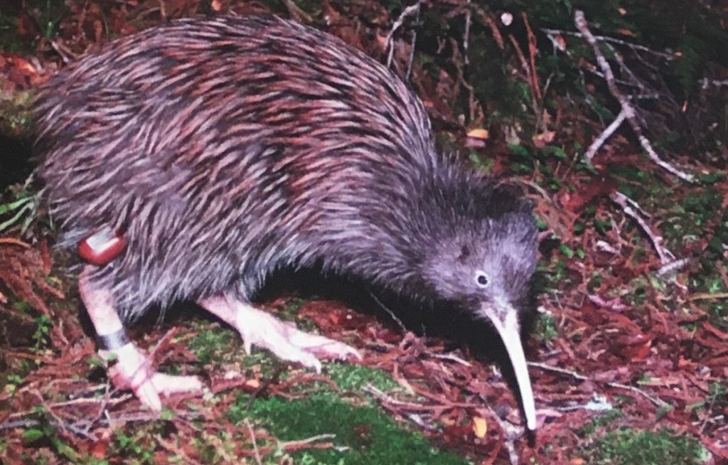 This kiwi chick is radio tagged so that it can be monitored as it rears.