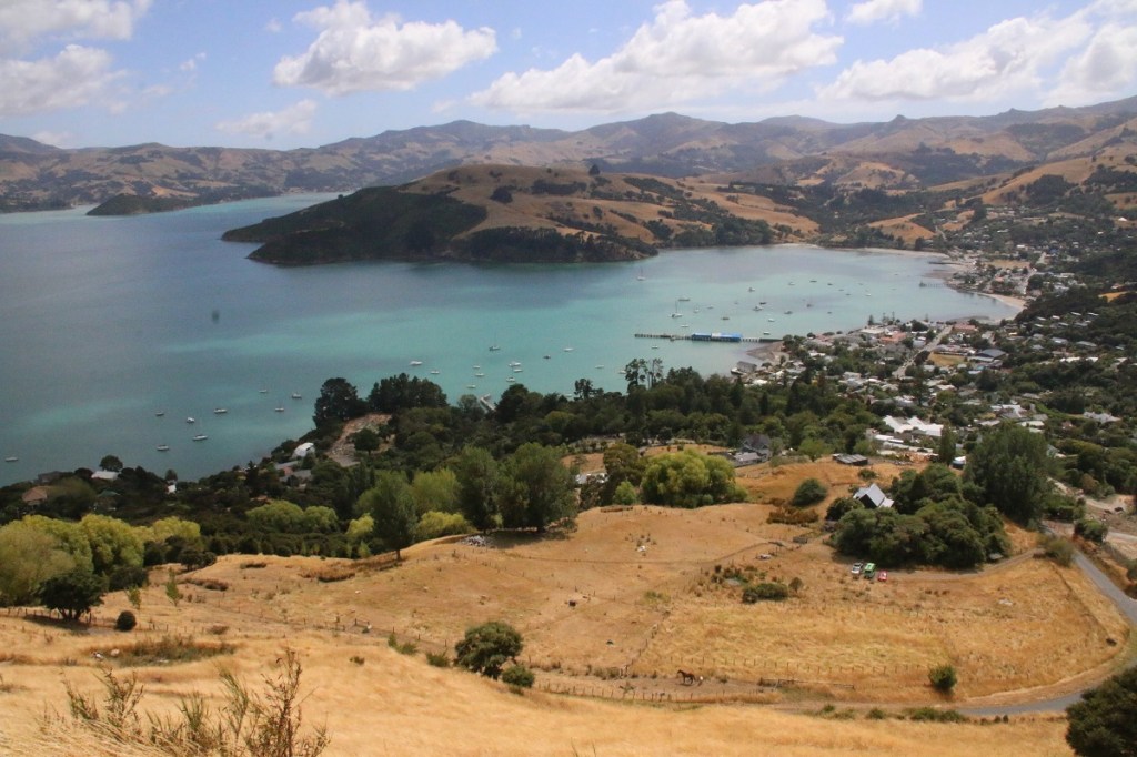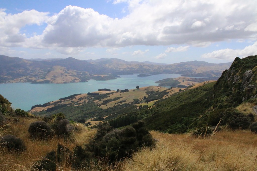 Akaroa in Maori means long harbour. This view gives a bit of an explanation why. Akaroa is on the small slip of water in the distance on the right.