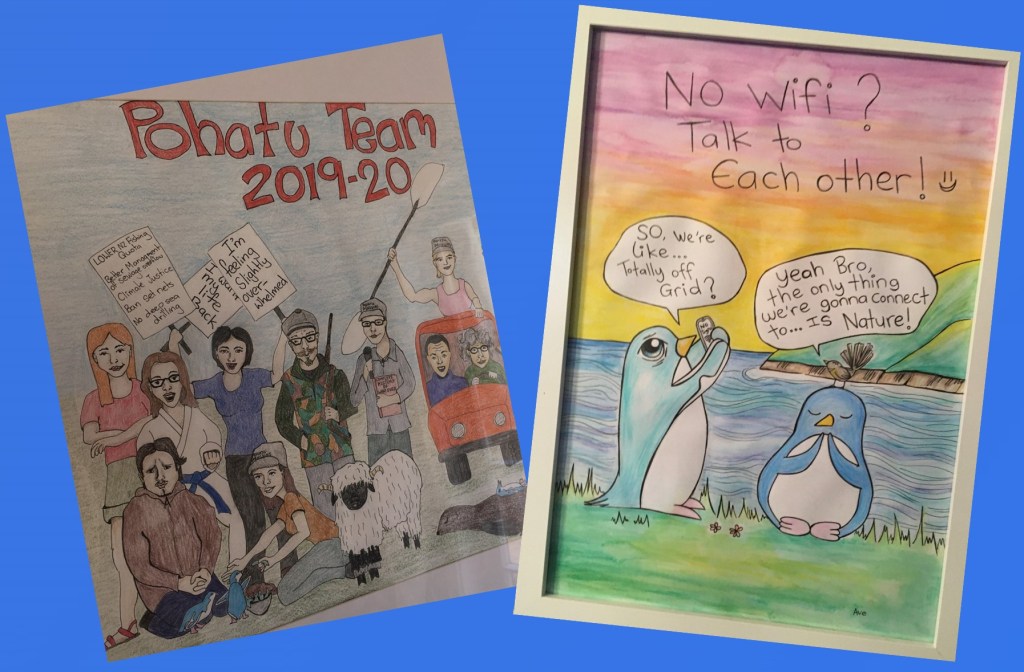 The dedication and focus of Pohatu Penguin crews are reflected in the humour shown in these posters, hanging in the kitchen where we stayed.