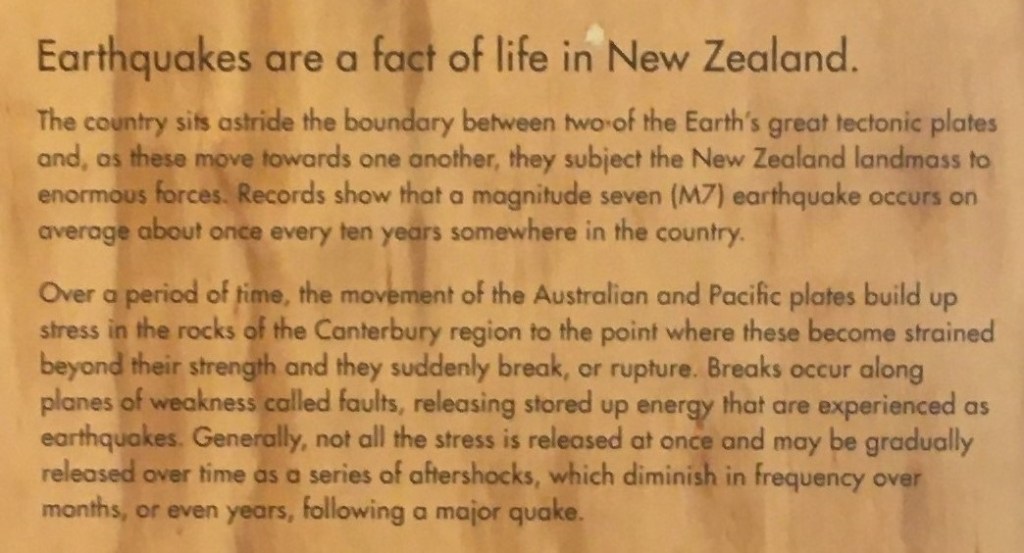 Christchurch’s museum about the earthquakes is called “Quake City”. It had films from the time of the quakes, and a follow-up with the same people 10 years later, it was very moving. These images from the museum give a sense of the devastation from the quakes.