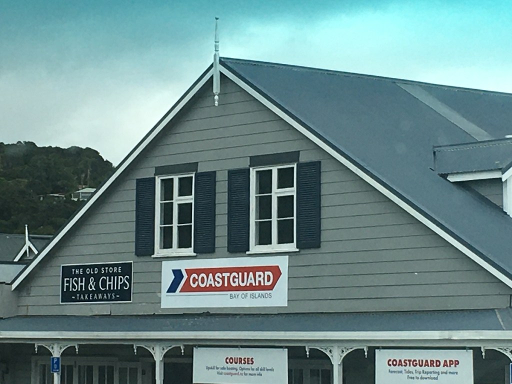 The ferry lineup had us waiting in front of the Bay of Islands Coastguard Station, a building with classic old trim.