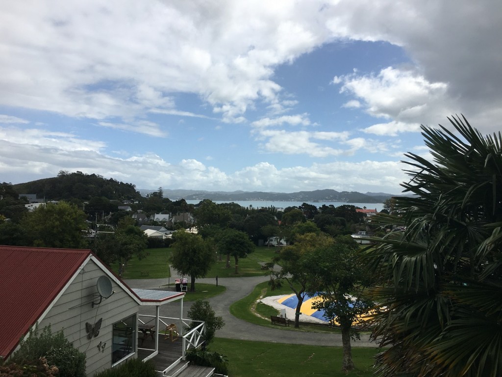 Russell is on a peninsula. The beachfront faced west toward Paihia. A second beach called Long Beach is on the east-facing side of the peninsula.